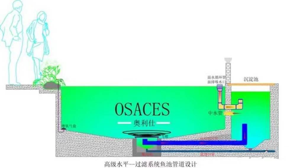 所謂“設計在先,施工在后”,魚池過濾系統的設計、管道電纜預埋要與魚池主體部分同步規劃,避免運行之后不合理再返工或重建。