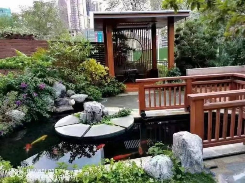在庭院景觀魚池設(shè)計(jì)中,要注意魚池與亭、臺(tái)、橋及假山的結(jié)合,形成風(fēng)格統(tǒng)一、山水相融的和諧人居環(huán)境。